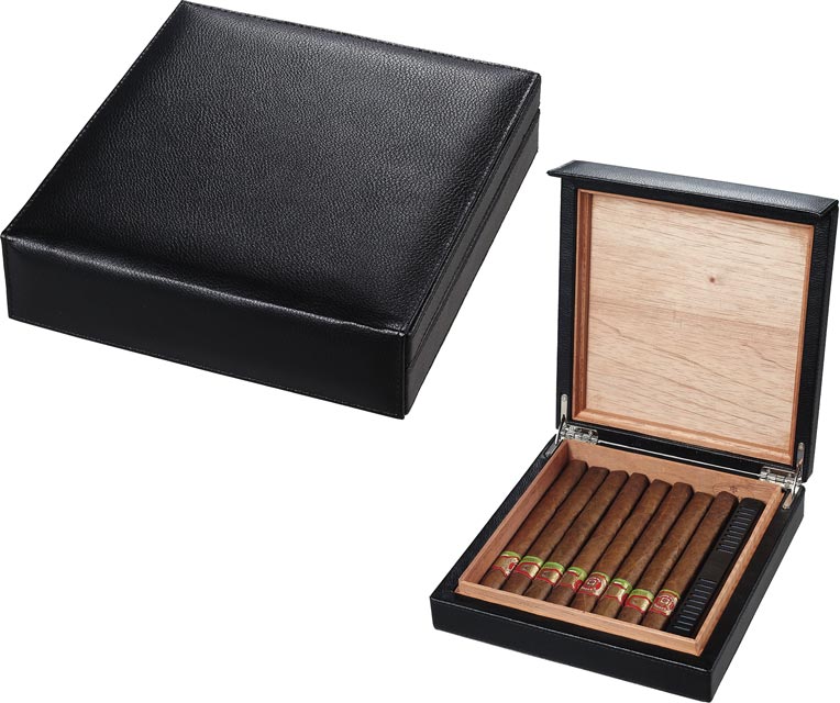 Visol Black Leather Cigar Humidor Holds 16 Cigars