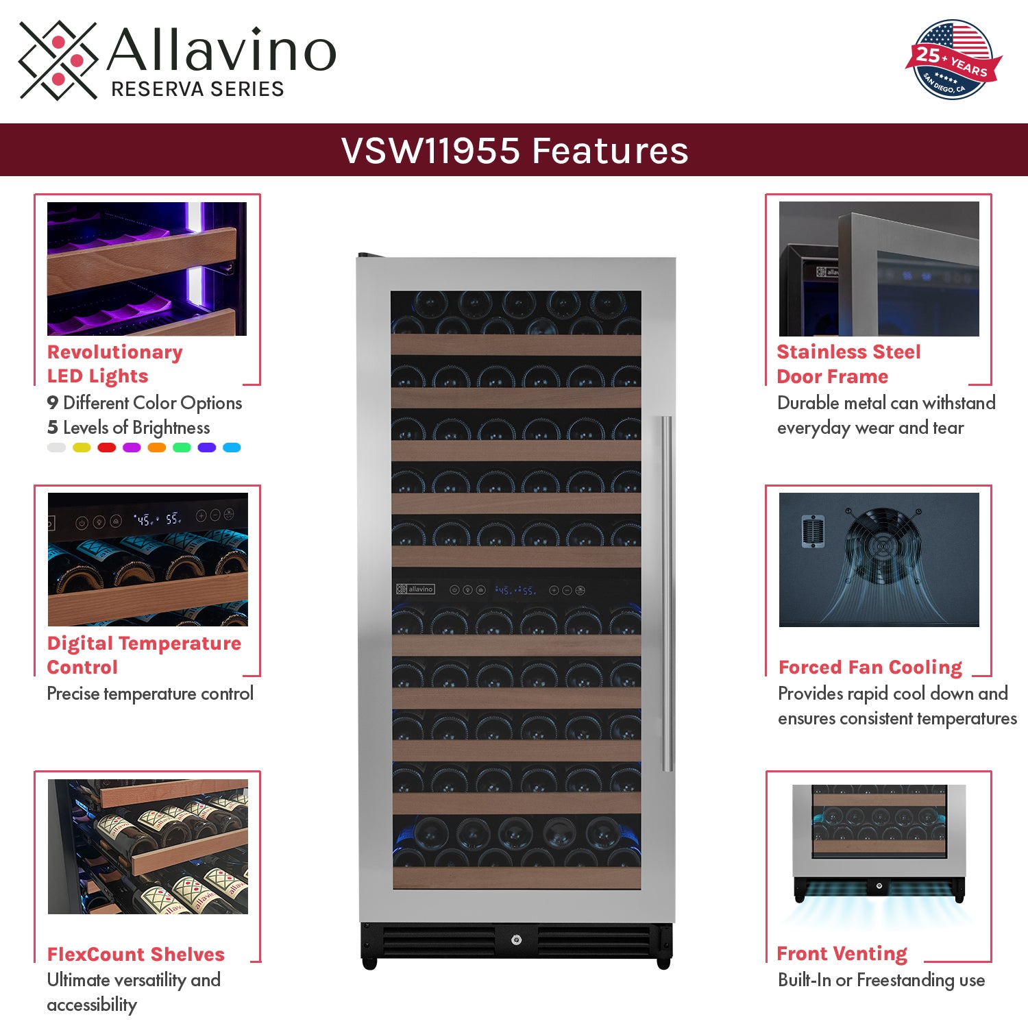 Allavino 119 Bottle 55" Tall Dual Zone Left Hinge Stainless Steel Wine Refrigerator - VSW11955D-2SL