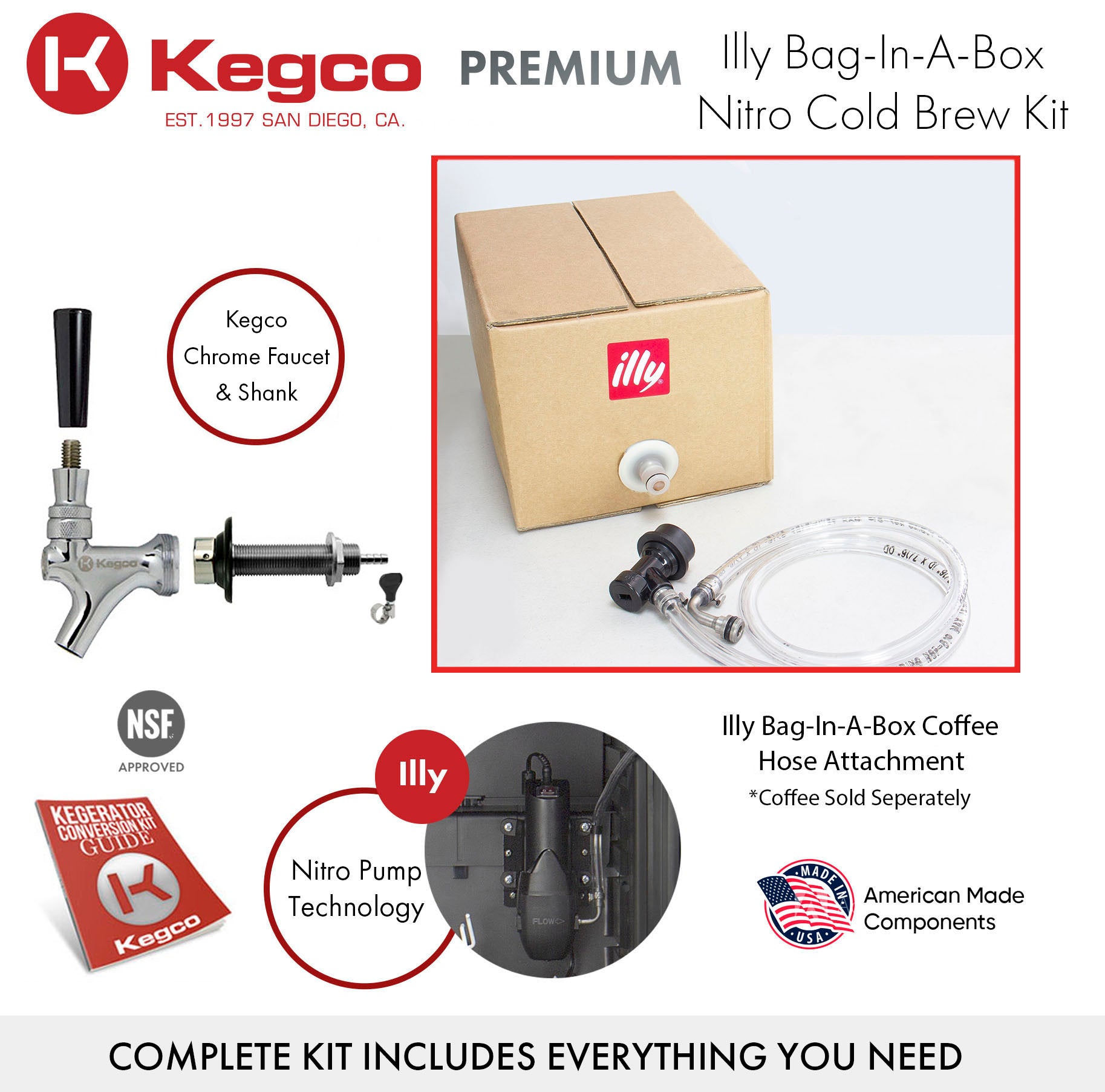 • The EXCLUSIVE Kegco HK-46-IY Illy-Bag-In-A-Box Cold Brew Coffee Mini Kegerator is a collaboration between renowned beer dispensing manufacturer, Kegco, and the gourmet coffee makers, Illy.