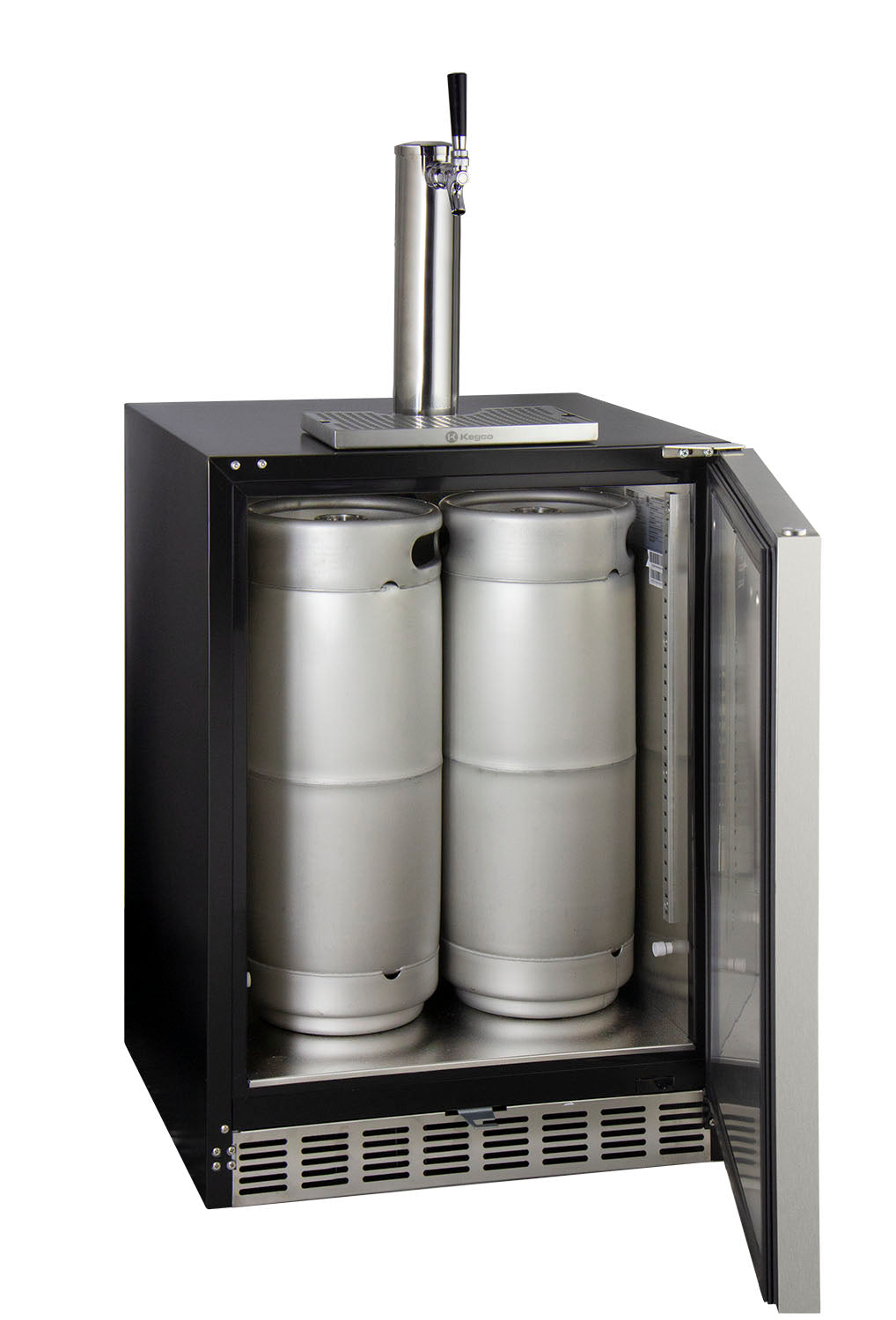 The beautiful stainless steel interior is more durable than the plastic liner found in many competing models and is easy to clean. The keg cooler has enough floor space to house one quarter slim keg or two five gallon commercial kegs.