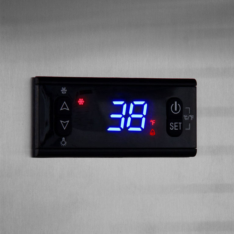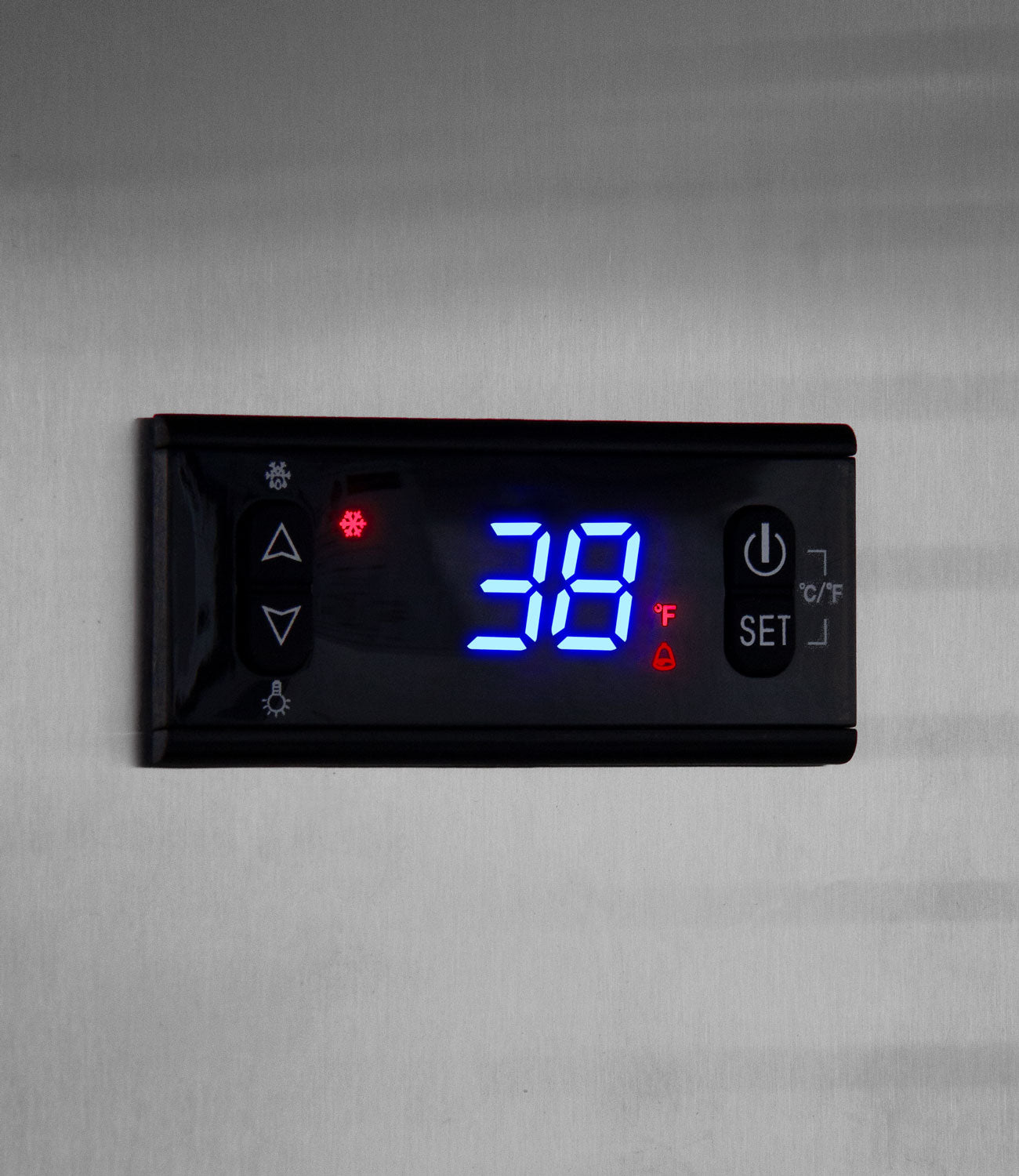 Easily adjust and view the set temperature, toggle between Celsius and Fahrenheit, or turn the interior light on and off with the push of a button. The temperature can be set between 32-50 degrees Fahrenheit to serve beer, wine, kombucha, or coffee.