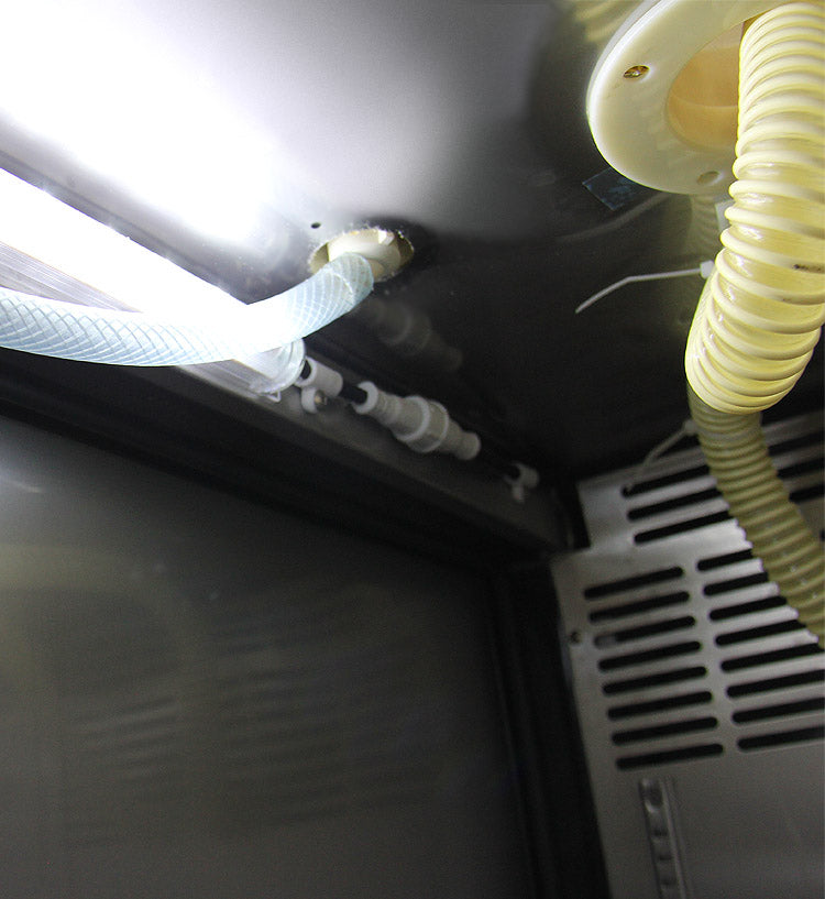 • An internal light conveniently illuminates the cabinet to make adjustments to your dispense system effortless