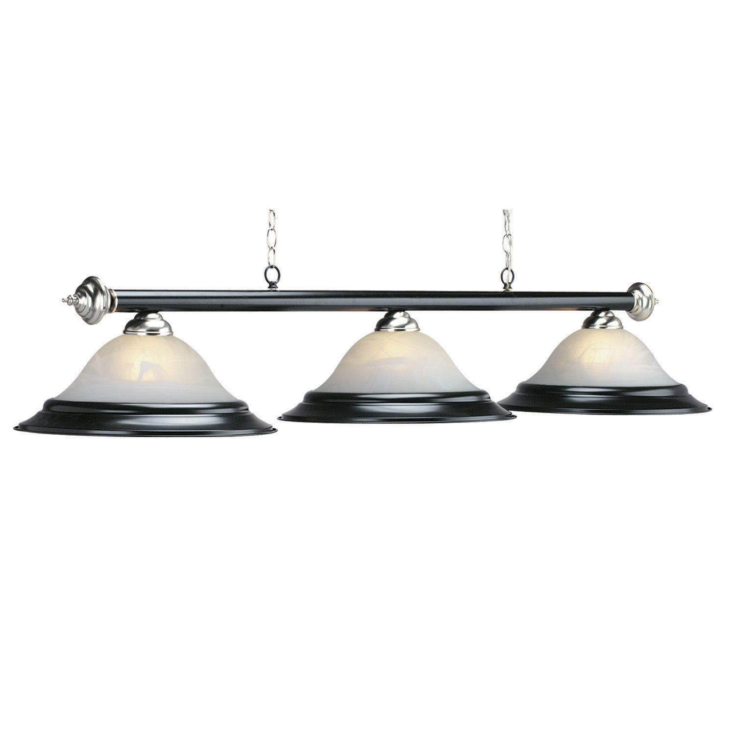 Decorated with beautiful glass shades adorned with metal rims in a matte black finish, this metal & glass three-light billiard pendant is perfect for a refined gaming space.