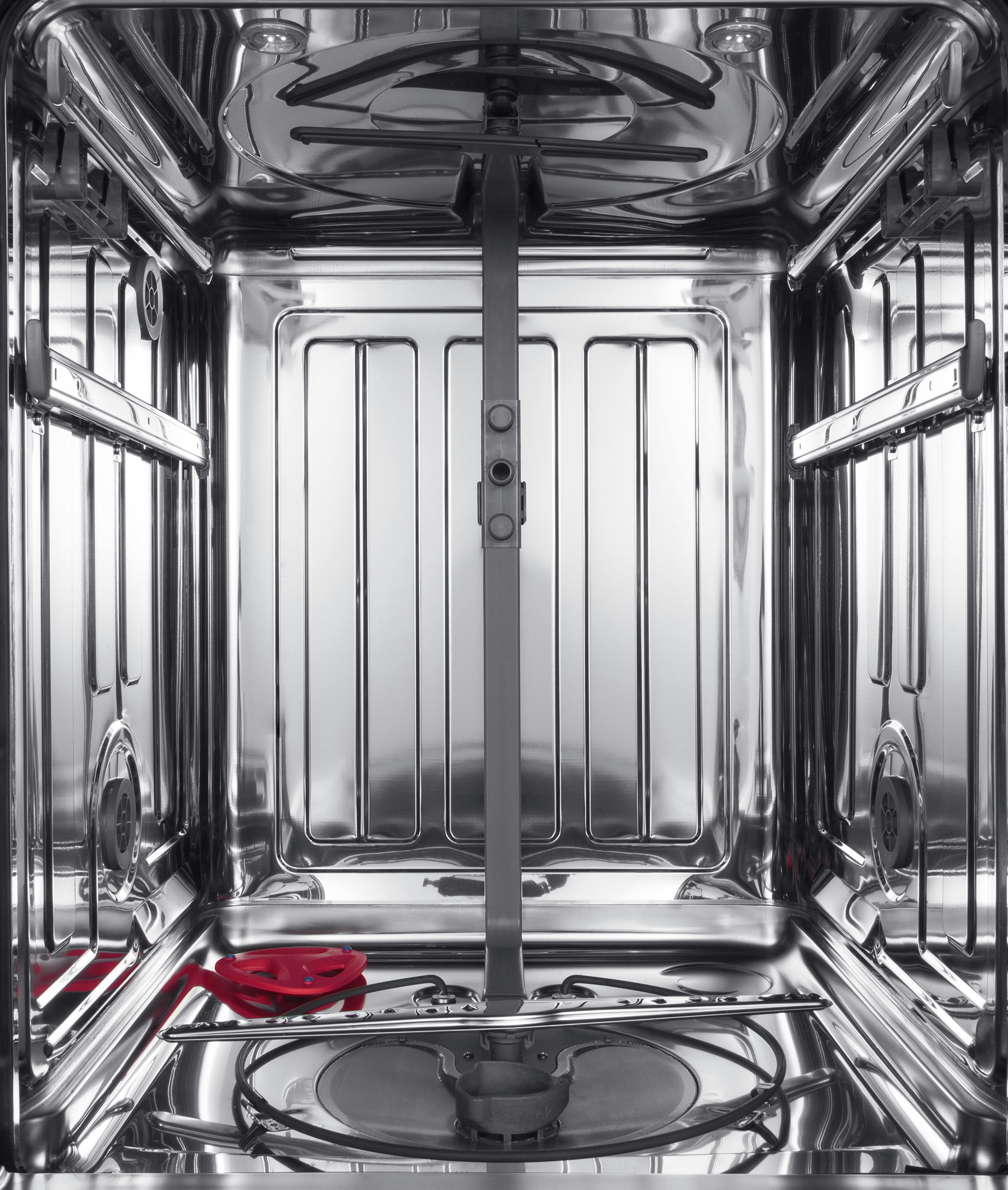 This sleek and modern built-in 24′ inch dishwasher is a great addition to any kitchen.   With a 14 place setting capacity along with the Smart Wash system, this unit can handle even the larger household dish-washing needs.  This dishwasher has 2 large pull out dish racks, a top cutlery rack, and a 6 wash programs with time delay feature.  The Smart Wash system will detect the soil level along with the size of the load and automatically performs an appropriate cycle for optimal efficiency.   For stubborn heavily soiled loads, 4 spray arms provide additional Steam Wash and Vortex Wash options for a deeper clean. The top cutlery rack allows fine utensils to be placed, that might potentially fall through the normal silverware basket.  New to this model is an active heated drying function that provides exceptional dish drying capability.