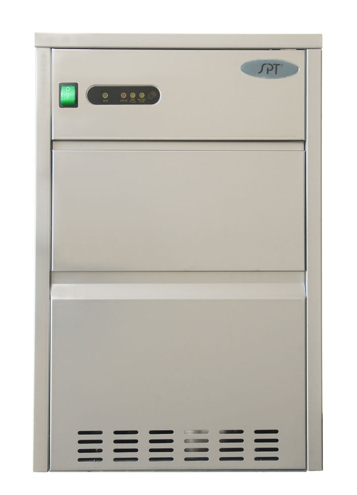 This freestanding fully automatic ice maker produces up to 110 lbs of bullet-shaped ice per day, with storage space of up to 15 lbs. Direct plumbing allows for constant supply of fresh ice without the hassle of manual fill. Full stainless steel housing is an attractive addition to any space setting.